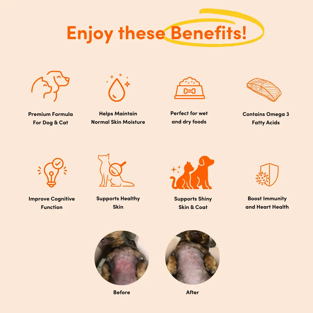 Packed with Omega-3 fatty acids, it supports your pet's skin, coat, cognitive function and immunity 💪