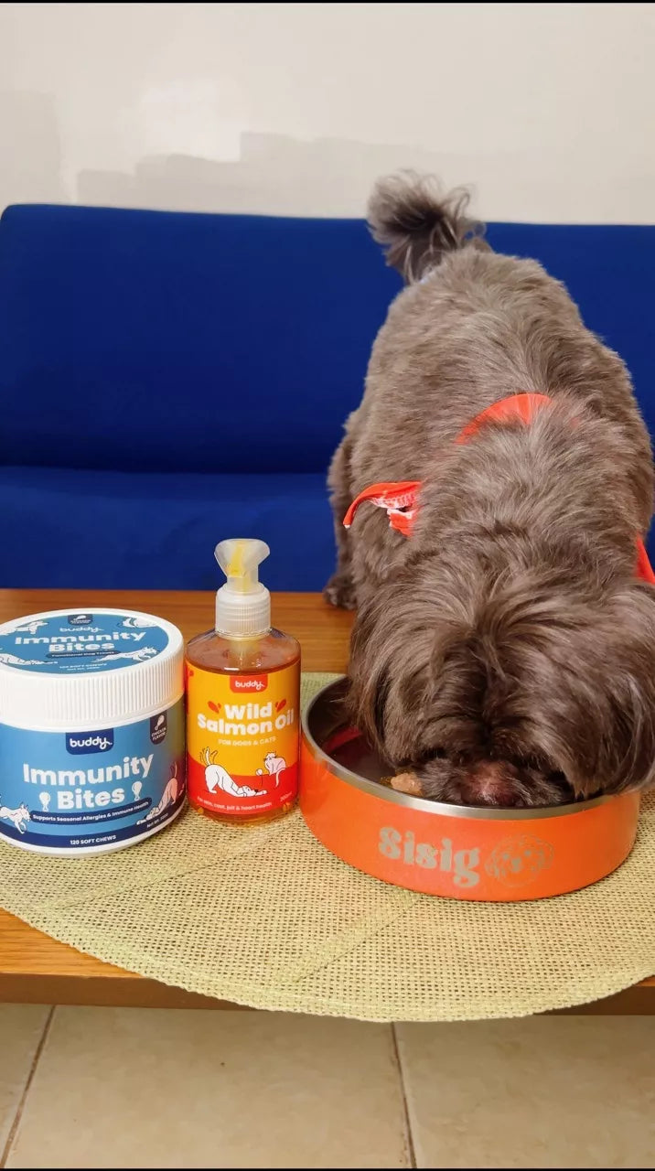 Sisig gets mild rashes from time to time, so I was looking for a supplement that could support his skin and coat. When I heard about Buddy’s Salmon Oil, I knew I had to try it out.